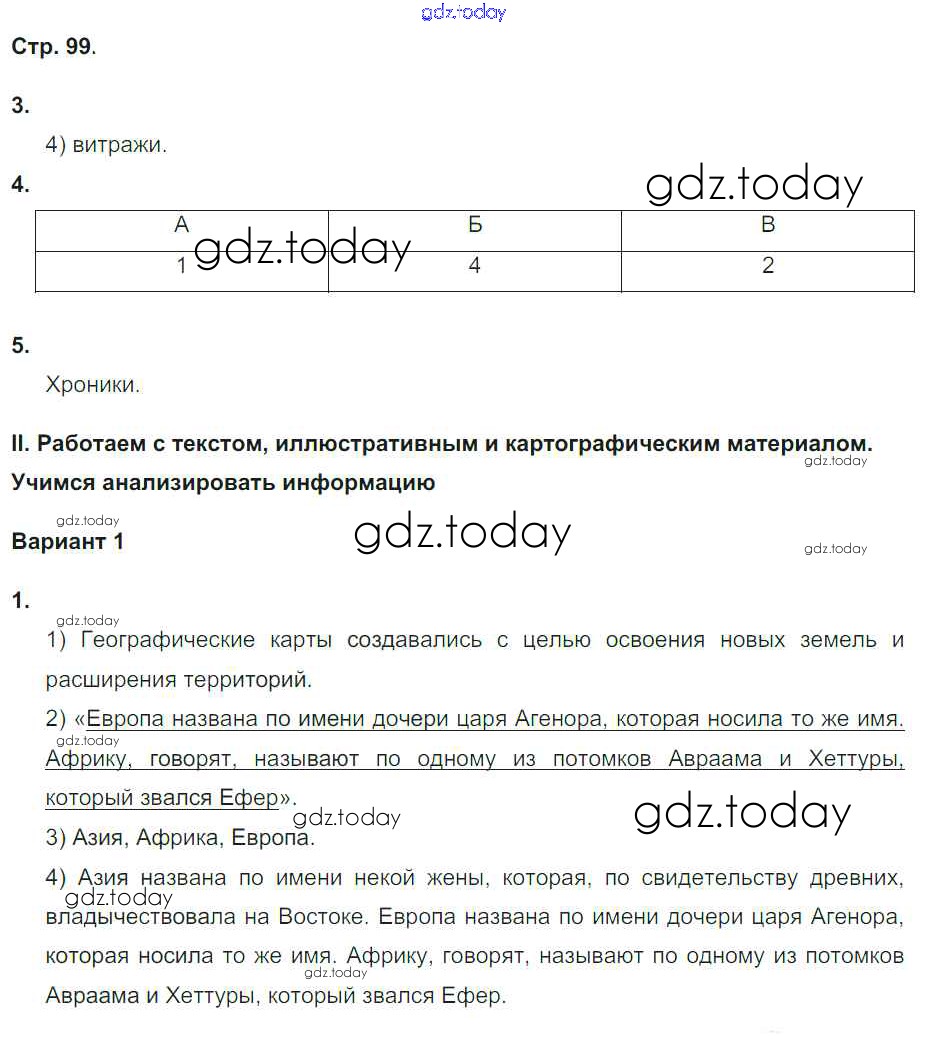 На страницах сайта gdz.today вы найдете учебный и вспомогательный материал, направленный на улучшения знаний школьной программы. ГДЗ - онлайн мир знаний Страницы (решение) 99 Рабочей тетради по Истории для 6 класса Чернова Экзамен УМК 2019