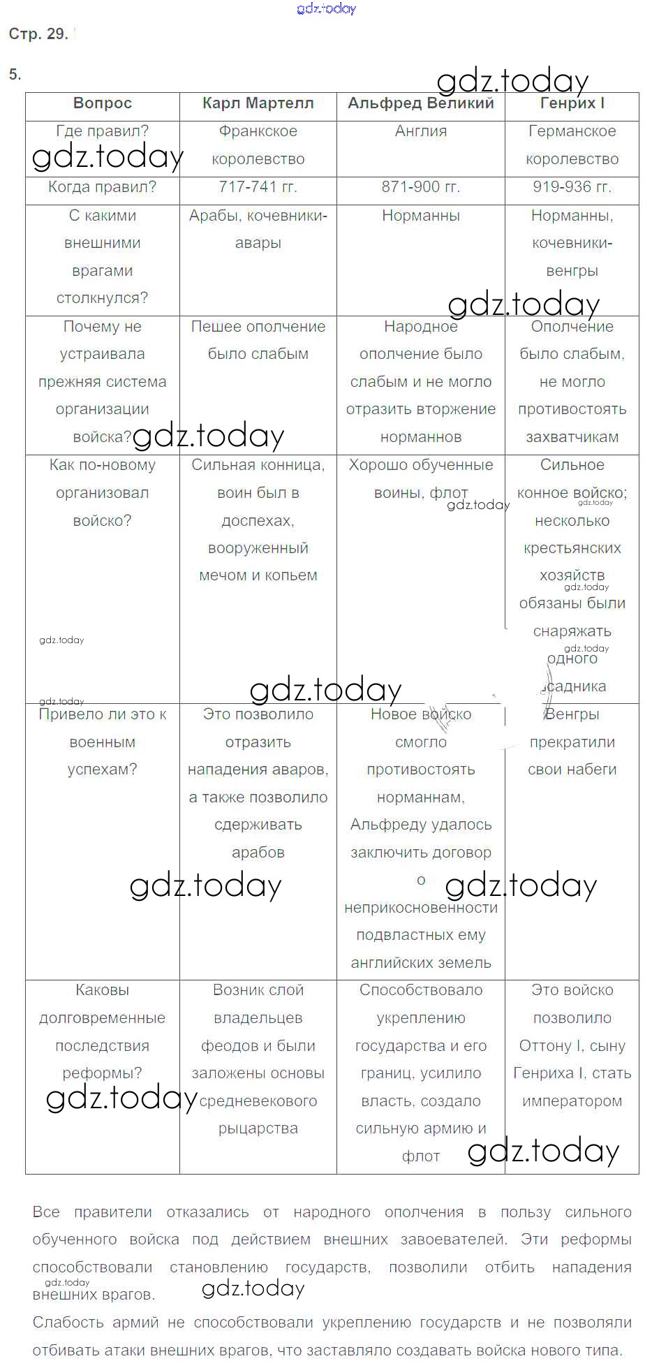 Ответы к Рождение Средневекового мира (решение) стр. 29 Тетради-тренажеру по Истории для 6 класса Ведюшкин, Ведюшкина Просвещение Сферы 2017