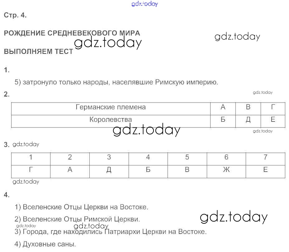 Ответы к Рождение Средневекового мира (решение) стр. 4 Тетради-тренажеру по Истории для 6 класса Ведюшкин, Ведюшкина Просвещение Сферы 2017