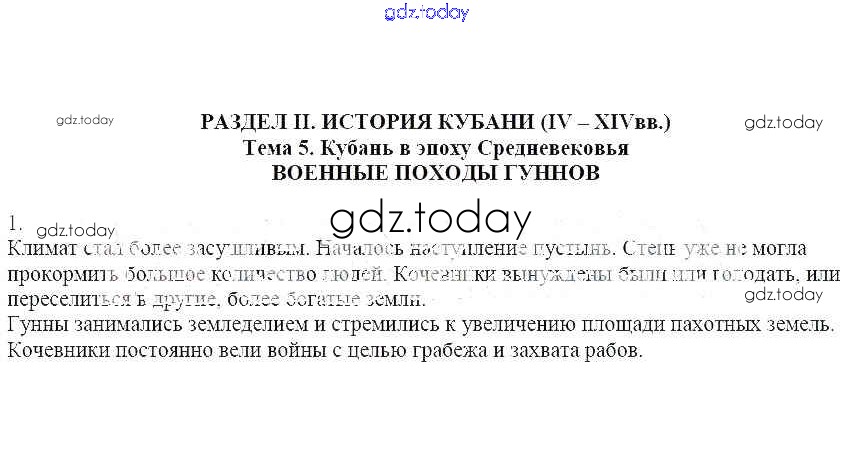 На страницах сайта gdz.today вы найдете учебный и вспомогательный материал, направленный на улучшения знаний школьной программы. ГДЗ - онлайн мир знаний Решение к теме 10. Военные походы гуннов 1 Рабочей тетради по Кубановедению для 6 класса Близнюк Перспективы образования 2019