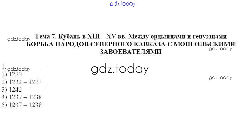 На страницах сайта gdz.today вы найдете учебный и вспомогательный материал, направленный на улучшения знаний школьной программы. ГДЗ - онлайн мир знаний Решение к теме 15. народов Северного Кавказа с монгольскими завоевателями 1 Рабочей тетради по Кубановедению для 6 класса Близнюк Перспективы образования 2019