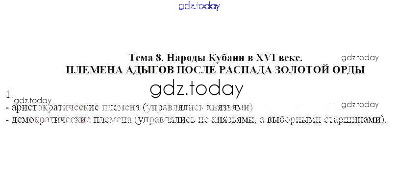 На страницах сайта gdz.today вы найдете учебный и вспомогательный материал, направленный на улучшения знаний школьной программы. ГДЗ - онлайн мир знаний Решение к теме 18. Племена адыгов после распада Золотой Орды 1 Рабочей тетради по Кубановедению для 6 класса Близнюк Перспективы образования 2019