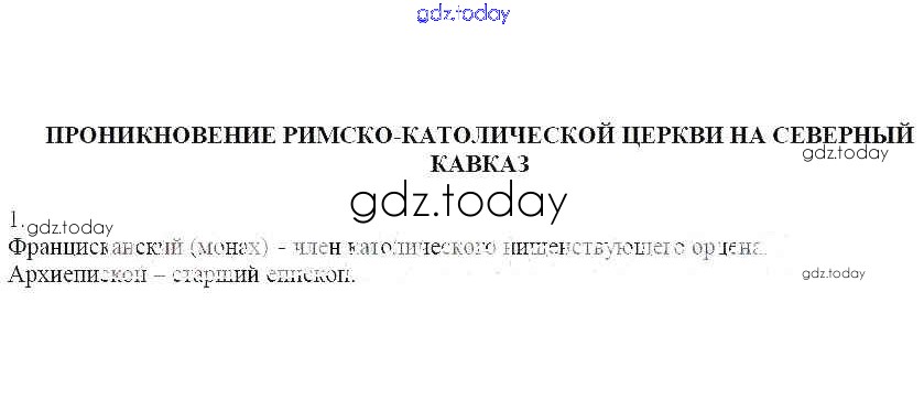 На страницах сайта gdz.today вы найдете учебный и вспомогательный материал, направленный на улучшения знаний школьной программы. ГДЗ - онлайн мир знаний Решение к теме 25. Проникновение Римско-Католической церкви на Северный Кавказ 1 Рабочей тетради по Кубановедению для 6 класса Близнюк Перспективы образования 2019