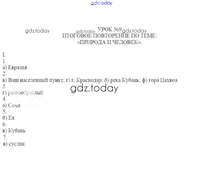 Ответы к Решение к уроку № 9. Итоговое повторение по теме «Природа и человек» 1 Рабочей тетради по Кубановедению для 6 класса Голикова, Морозова Традиция 2019