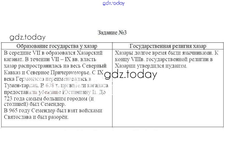 На страницах сайта gdz.today вы найдете учебный и вспомогательный материал, направленный на улучшения знаний школьной программы. ГДЗ - онлайн мир знаний Решение к уроку № 12. Расцвет и падение Хазарского каганата 3 Рабочей тетради по Кубановедению для 6 класса Голикова, Морозова Традиция 2019