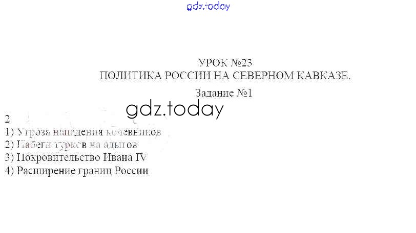 На страницах сайта gdz.today вы найдете учебный и вспомогательный материал, направленный на улучшения знаний школьной программы. ГДЗ - онлайн мир знаний Решение к уроку № 23. Политика России на Северном Кавказе 1 Рабочей тетради по Кубановедению для 6 класса Голикова, Морозова Традиция 2019