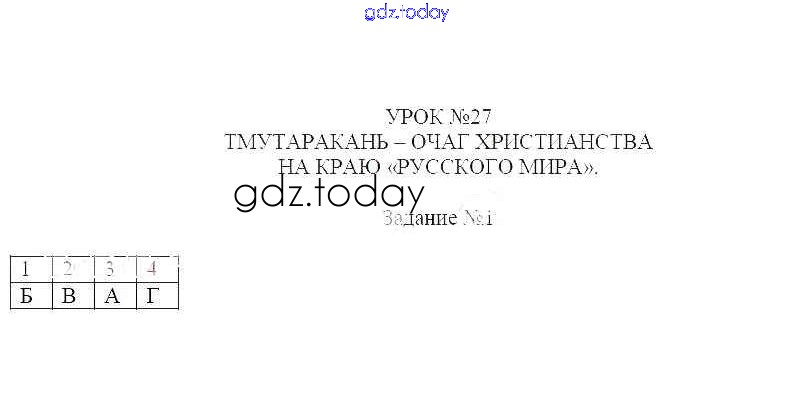 На страницах сайта gdz.today вы найдете учебный и вспомогательный материал, направленный на улучшения знаний школьной программы. ГДЗ - онлайн мир знаний Решение к уроку № 27. Тмутаракань – очаг христианства на краю «русского мира» 1 Рабочей тетради по Кубановедению для 6 класса Голикова, Морозова Традиция 2019