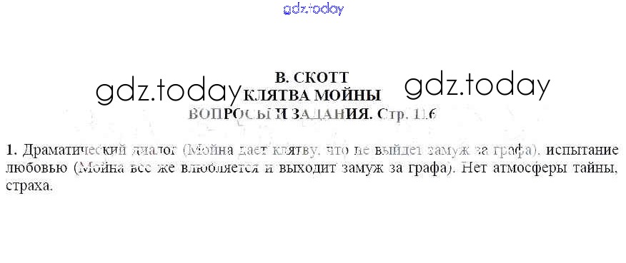 На страницах сайта gdz.today вы найдете учебный и вспомогательный материал, направленный на улучшения знаний школьной программы. ГДЗ - онлайн мир знаний Вопросы и задания В. Скотт. Клятва Мойны 1 Учебнику по Литературе для 6 класса Чертов, Трубина Просвещение Академический школьный учебник 2018