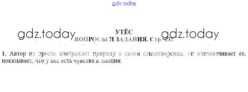 На страницах сайта gdz.today вы найдете учебный и вспомогательный материал, направленный на улучшения знаний школьной программы. ГДЗ - онлайн мир знаний Вопросы и задания Утес 1 Учебнику по Литературе для 6 класса Чертов, Трубина Просвещение Академический школьный учебник 2018