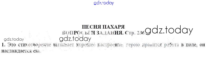 На страницах сайта gdz.today вы найдете учебный и вспомогательный материал, направленный на улучшения знаний школьной программы. ГДЗ - онлайн мир знаний Вопросы и задания Песня пахаря 1 Учебнику по Литературе для 6 класса Чертов, Трубина Просвещение Академический школьный учебник 2018