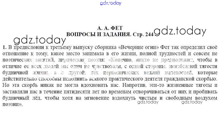 На страницах сайта gdz.today вы найдете учебный и вспомогательный материал, направленный на улучшения знаний школьной программы. ГДЗ - онлайн мир знаний Вопросы и задания А. А. Фет 1 Учебнику по Литературе для 6 класса Чертов, Трубина Просвещение Академический школьный учебник 2018