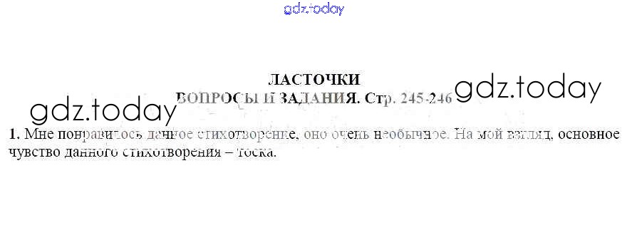 На страницах сайта gdz.today вы найдете учебный и вспомогательный материал, направленный на улучшения знаний школьной программы. ГДЗ - онлайн мир знаний Вопросы и задания Ласточки 1 Учебнику по Литературе для 6 класса Чертов, Трубина Просвещение Академический школьный учебник 2018
