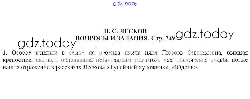 На страницах сайта gdz.today вы найдете учебный и вспомогательный материал, направленный на улучшения знаний школьной программы. ГДЗ - онлайн мир знаний Вопросы и задания Н. С. Лесков 1 Учебнику по Литературе для 6 класса Чертов, Трубина Просвещение Академический школьный учебник 2018