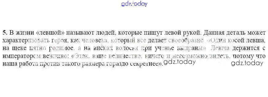 На страницах сайта gdz.today вы найдете учебный и вспомогательный материал, направленный на улучшения знаний школьной программы. ГДЗ - онлайн мир знаний Вопросы и задания Левша 5 Учебнику по Литературе для 6 класса Чертов, Трубина Просвещение Академический школьный учебник 2018