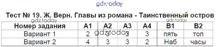 Ответы к Решение к тестам Тест №19. Таинственный остров Контрольно-измерительным материалам (КИМ) по Литературе для 6 класса Королева ВАКО 2015