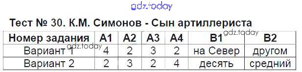 Ответы к Решение к тестам Тест №30. Сын артиллериста Контрольно-измерительным материалам (КИМ) по Литературе для 6 класса Королева ВАКО 2015