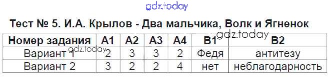 На страницах сайта gdz.today вы найдете учебный и вспомогательный материал, направленный на улучшения знаний школьной программы. ГДЗ - онлайн мир знаний Решение к тестам Тест №5. Два мальчика, Волк и Ягненок Контрольно-измерительным материалам (КИМ) по Литературе для 6 класса Королева ВАКО 2015