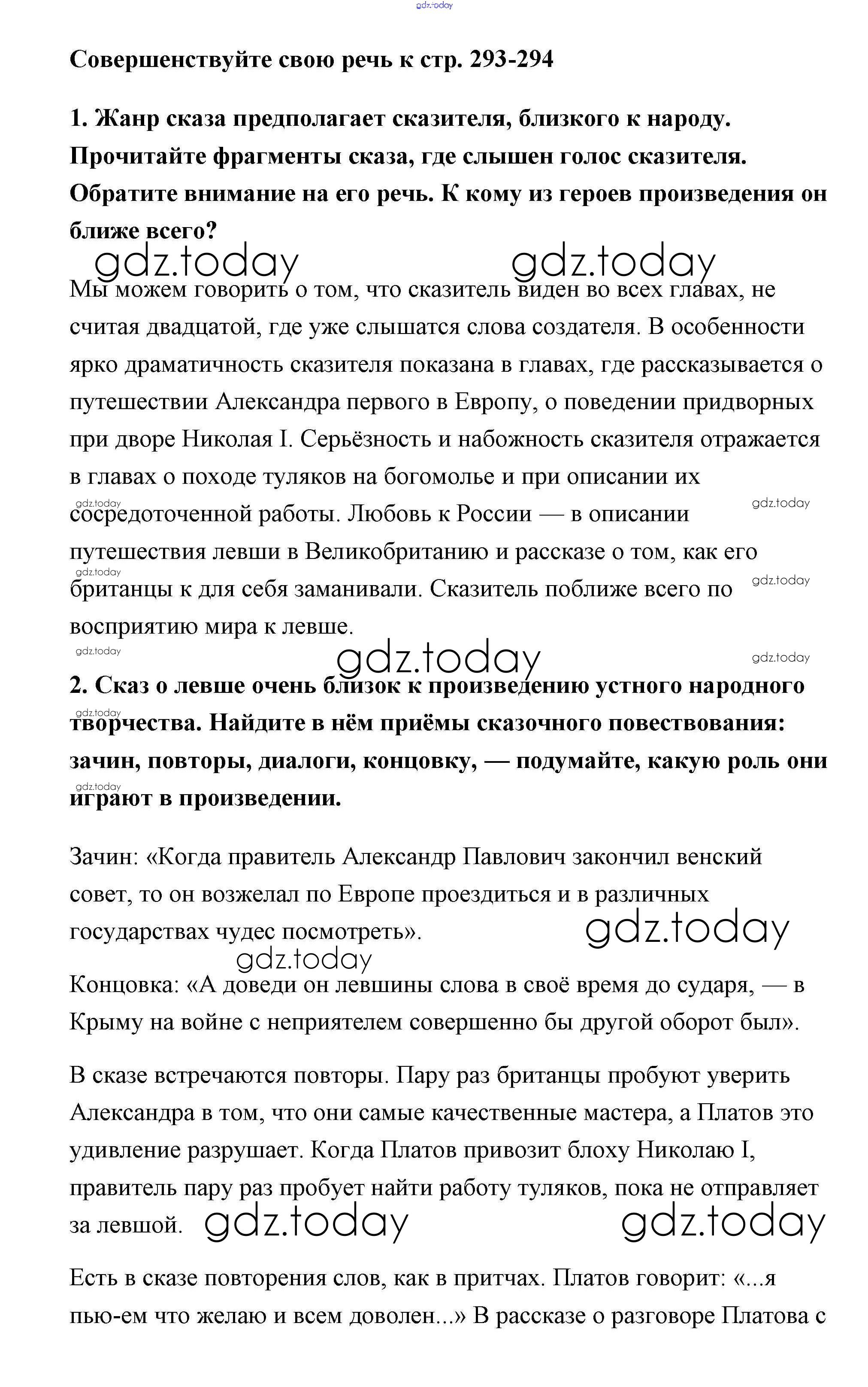 На страницах сайта gdz.today вы найдете учебный и вспомогательный материал, направленный на улучшения знаний школьной программы. ГДЗ - онлайн мир знаний Лесков Решение к части 1 (Старое 15-е издание) страница 293-294 Учебнику по Литературе для 6 класса Полухина, Коровина Просвещение 2016
