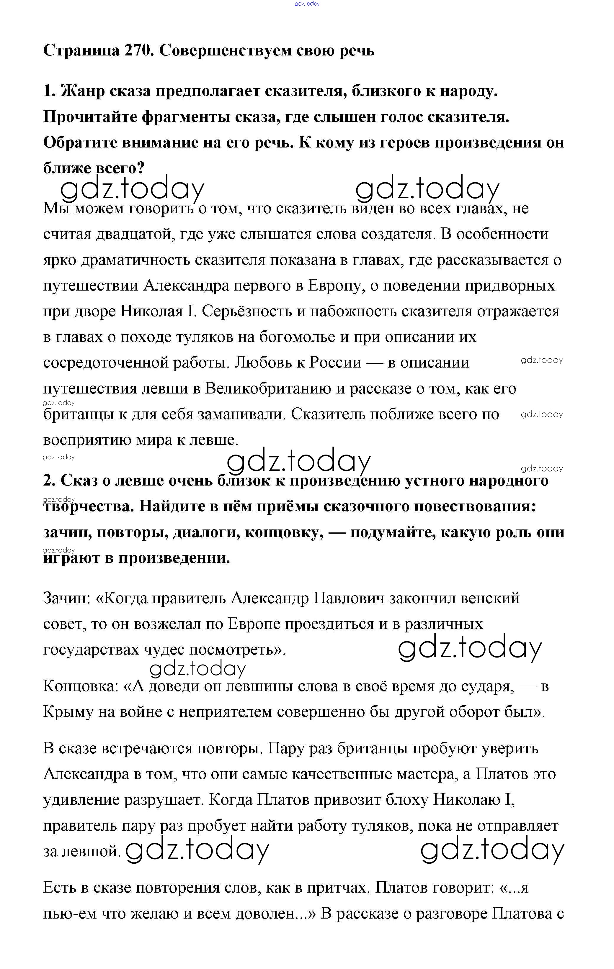 На страницах сайта gdz.today вы найдете учебный и вспомогательный материал, направленный на улучшения знаний школьной программы. ГДЗ - онлайн мир знаний Лесков Решение к части 1 (Новое 16-е издание) страница 270 Учебнику по Литературе для 6 класса Полухина, Коровина Просвещение 2016
