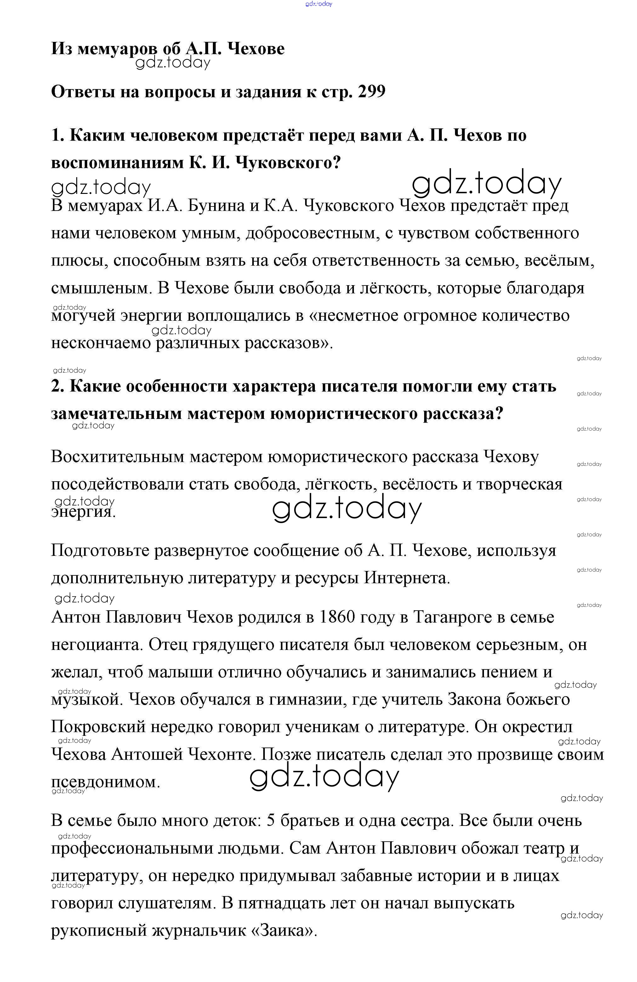 Ответы к Писатели улыбаются Решение к части 1 (Старое 15-е издание) страница 299 Учебнику по Литературе для 6 класса Полухина, Коровина Просвещение 2016