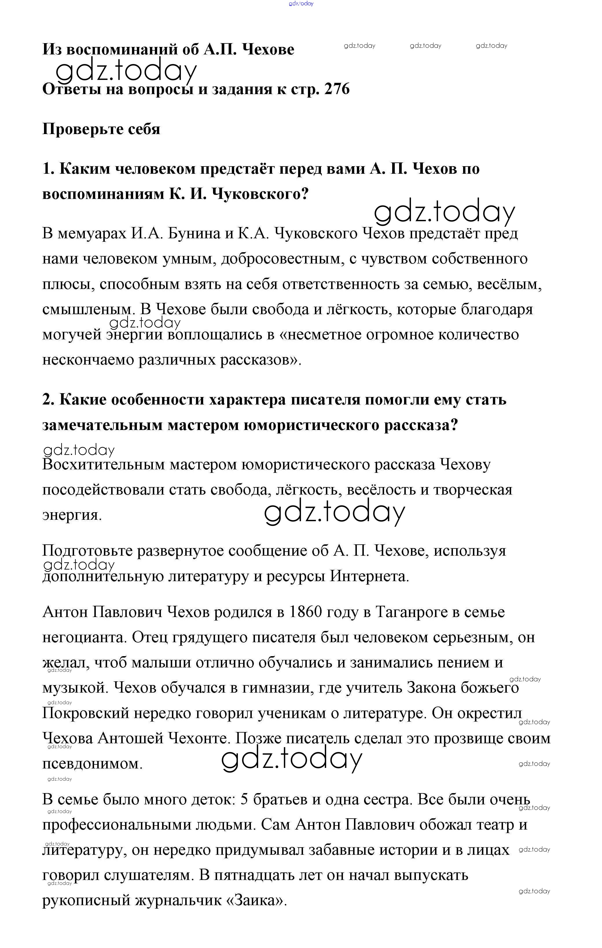 На страницах сайта gdz.today вы найдете учебный и вспомогательный материал, направленный на улучшения знаний школьной программы. ГДЗ - онлайн мир знаний Писатели улыбаются Решение к части 1 (Новое 16-е издание) страница 276 Учебнику по Литературе для 6 класса Полухина, Коровина Просвещение 2016