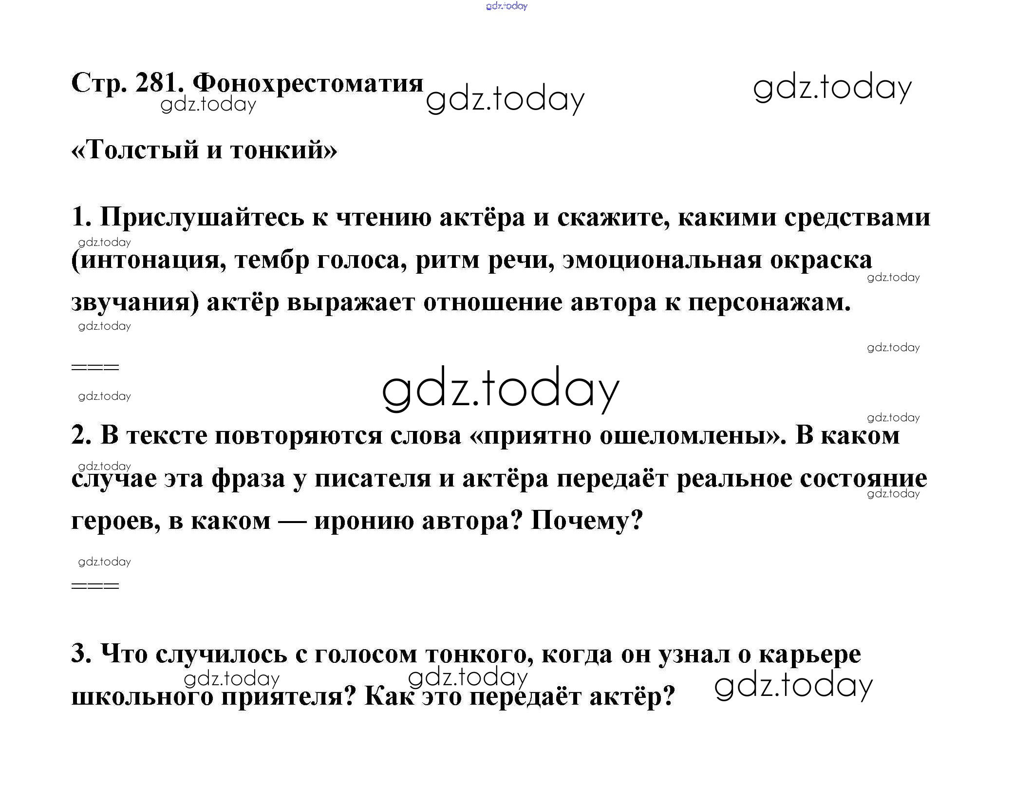 Ответы к Писатели улыбаются Решение к части 1 (Новое 16-е издание) страница 281 Учебнику по Литературе для 6 класса Полухина, Коровина Просвещение 2016