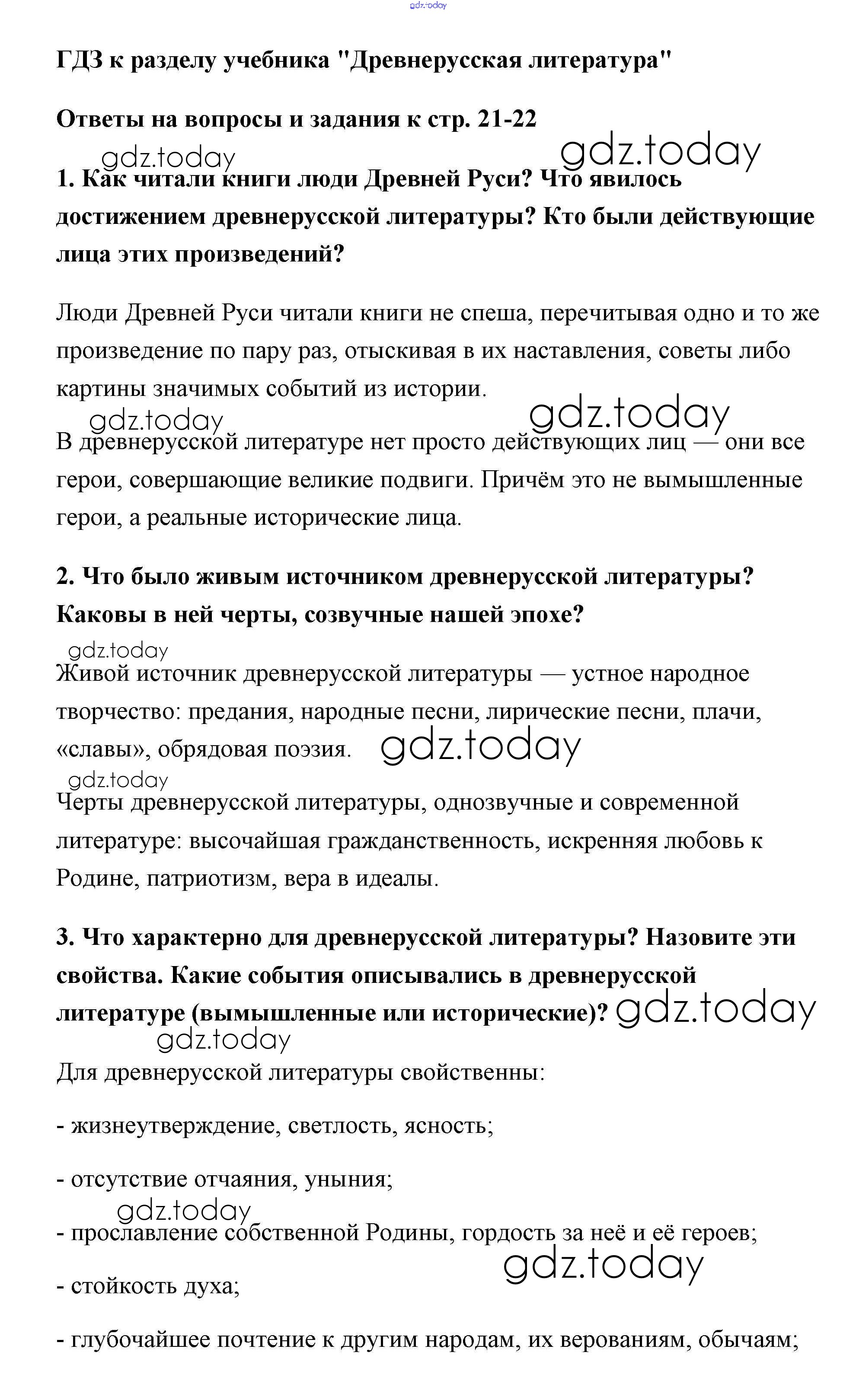 Ответы к Древнерусская литература Решение к части 1 (Старое 15-е издание) страница 21-22 Учебнику по Литературе для 6 класса Полухина, Коровина Просвещение 2016