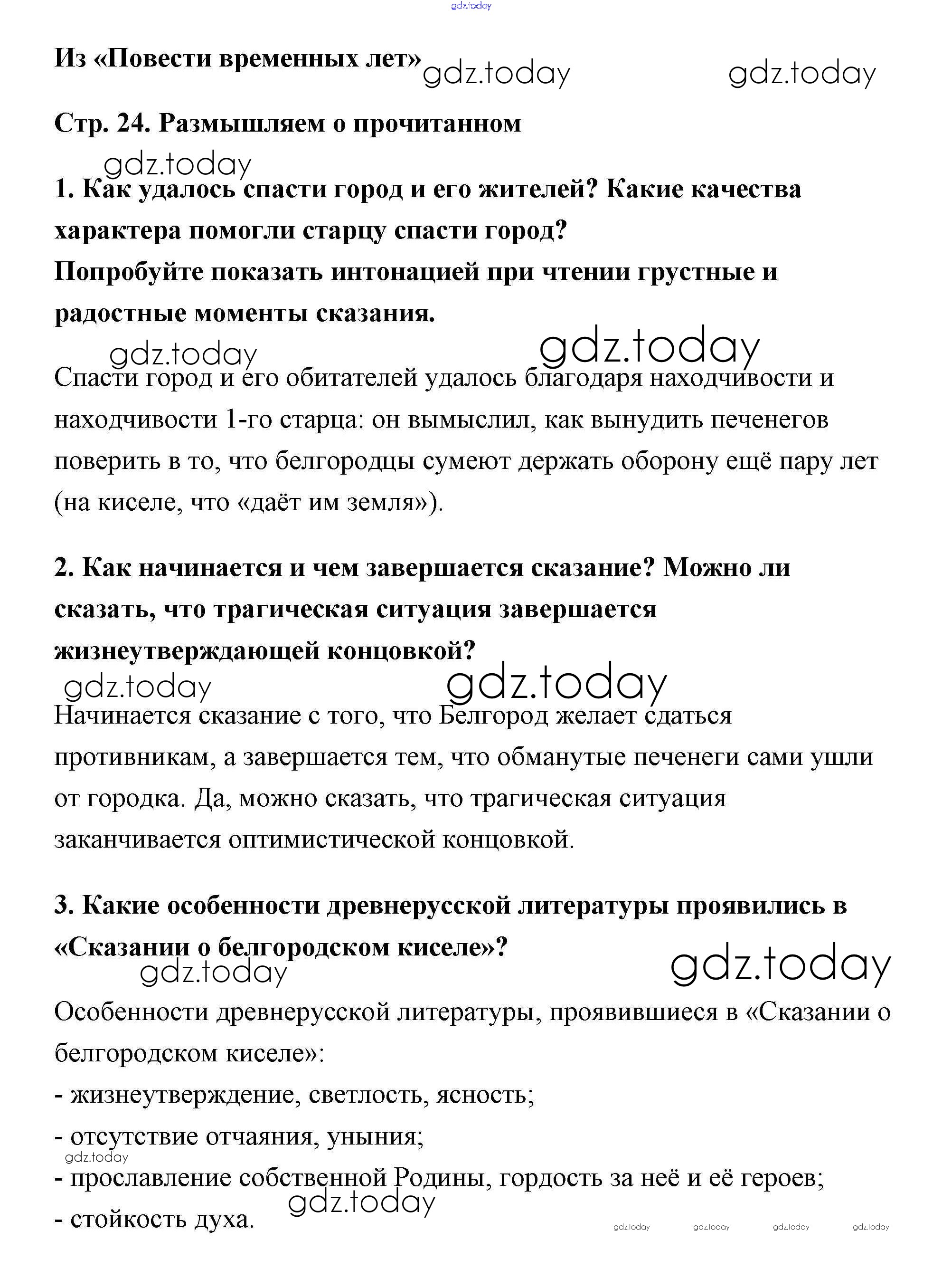 Ответы к Древнерусская литература Решение к части 1 (Новое 16-е издание) страница 24 Учебнику по Литературе для 6 класса Полухина, Коровина Просвещение 2016