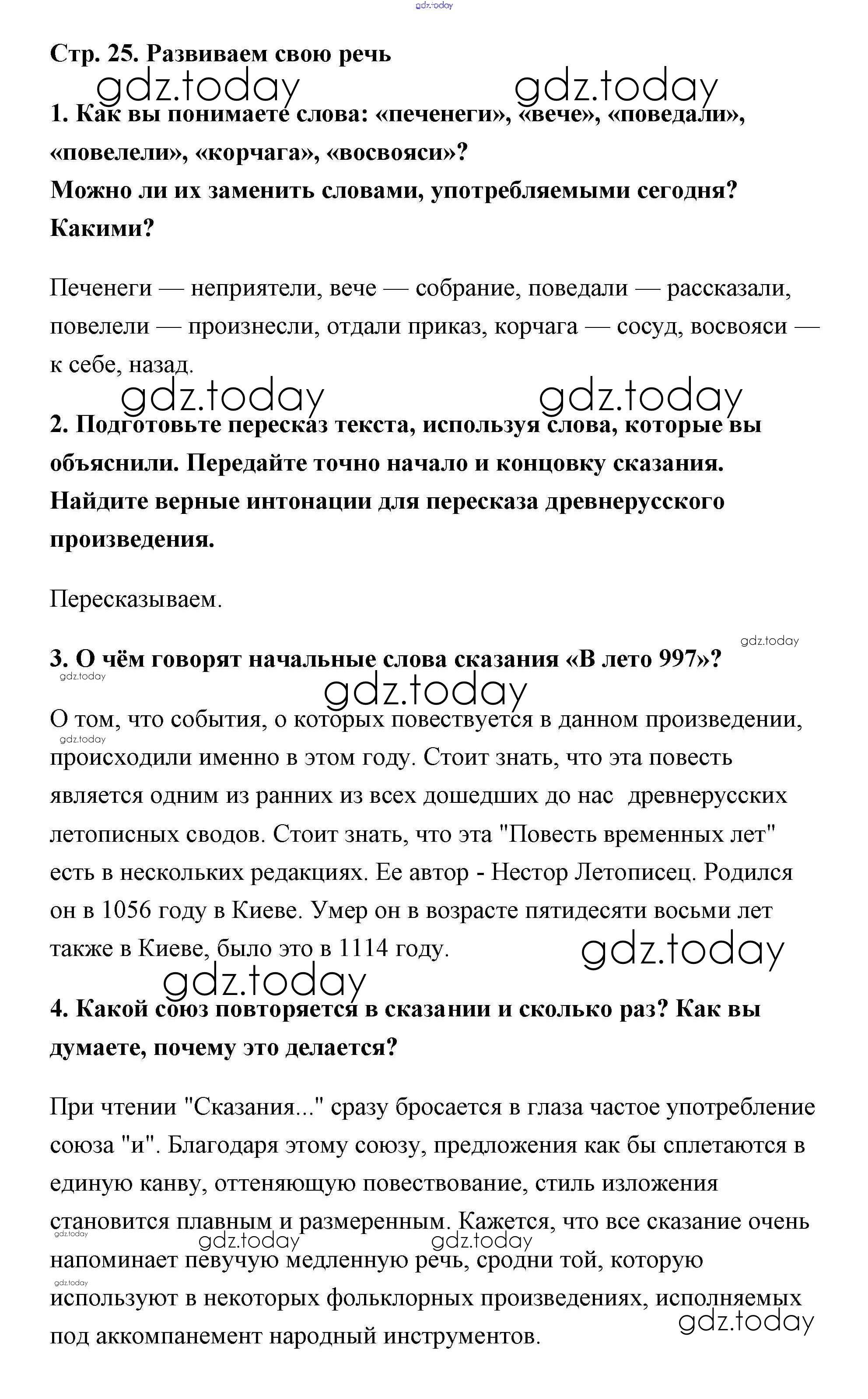 Ответы к Древнерусская литература Решение к части 1 (Новое 16-е издание) страница 25 Учебнику по Литературе для 6 класса Полухина, Коровина Просвещение 2016