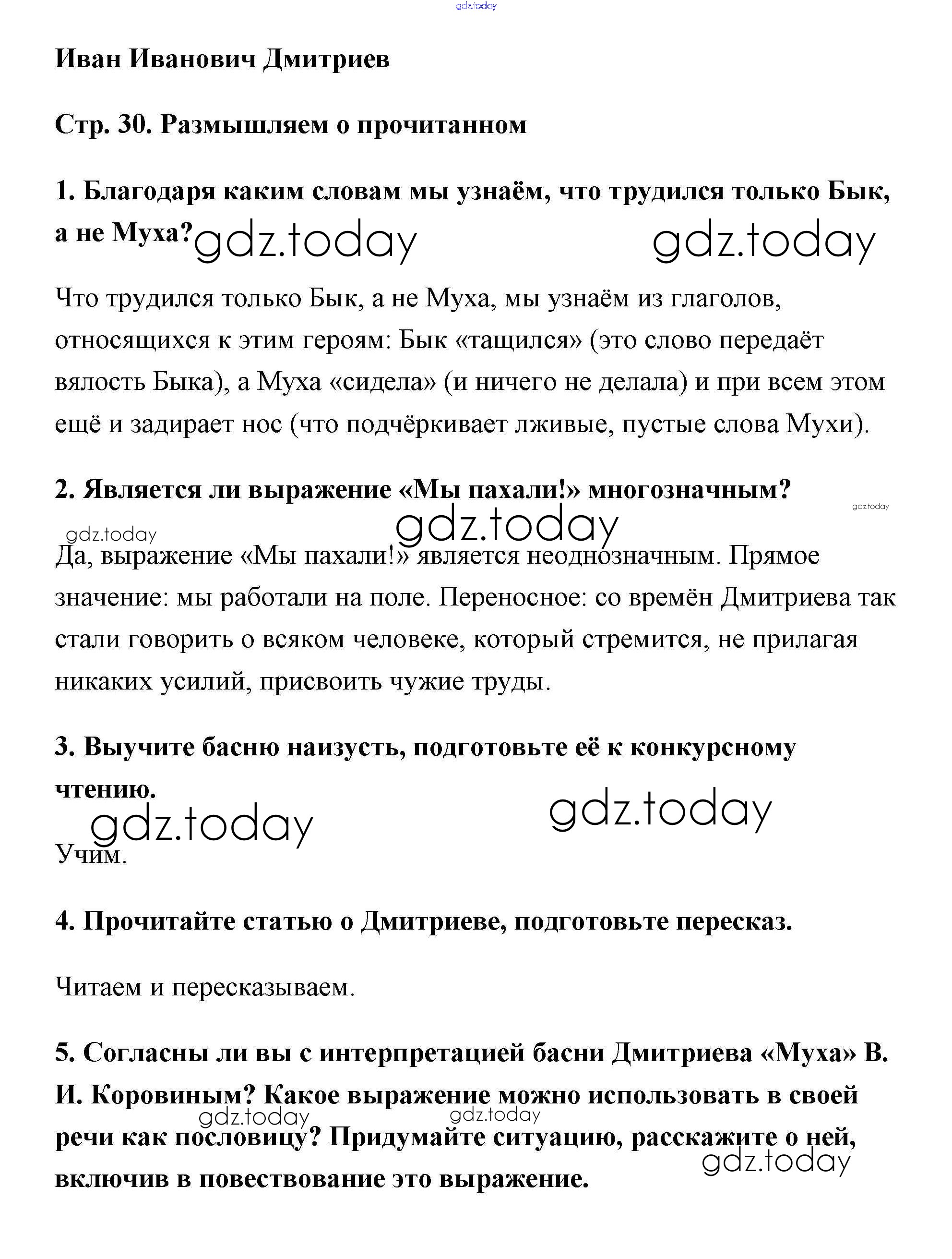 Ответы к Произведения русских писателей 18 века Решение к части 1 (Новое 16-е издание) страница 30 Учебнику по Литературе для 6 класса Полухина, Коровина Просвещение 2016