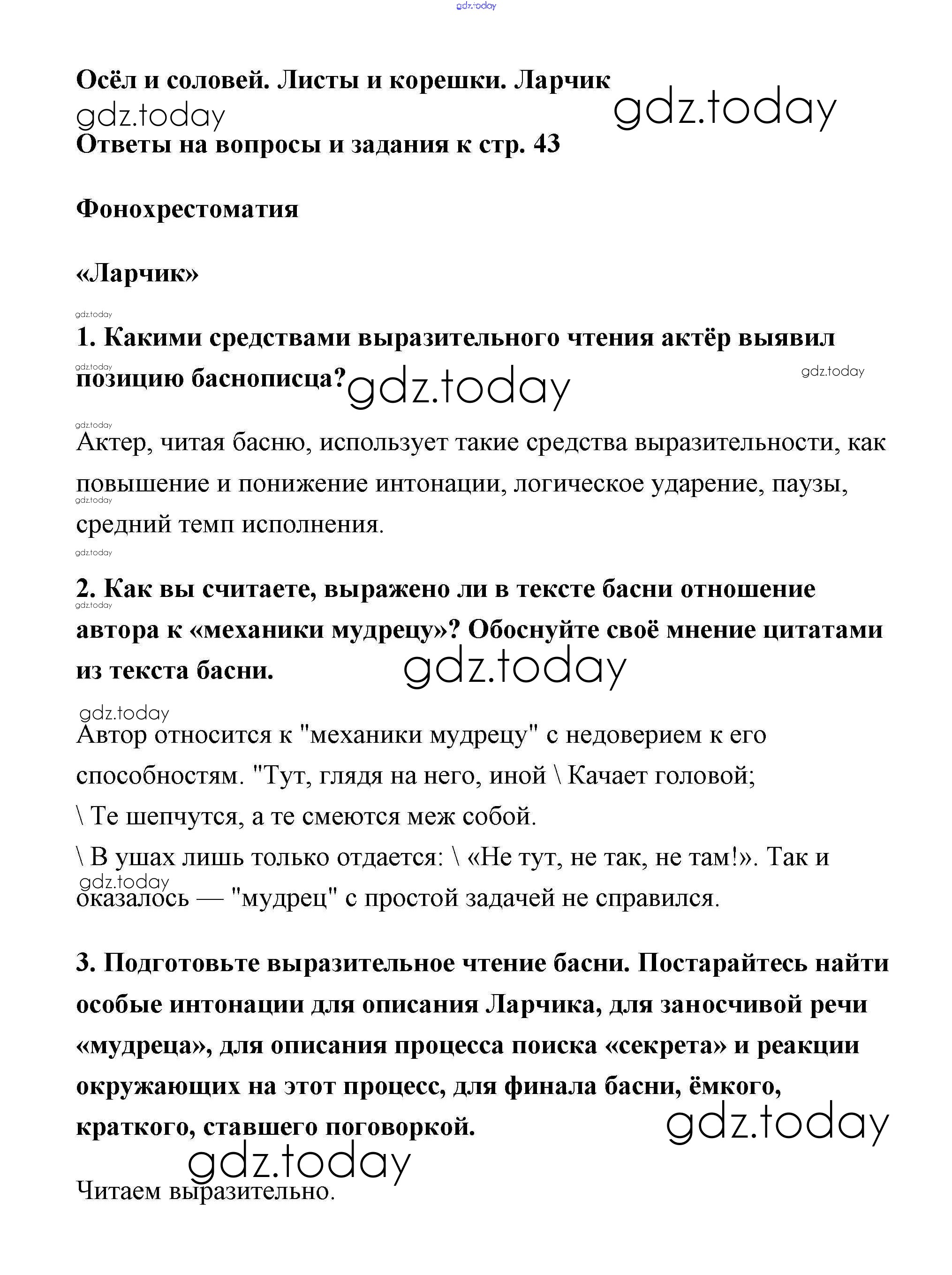 Ответы к Произведения русских писателей 18 века Решение к части 1 (Новое 16-е издание) страница 43 Учебнику по Литературе для 6 класса Полухина, Коровина Просвещение 2016