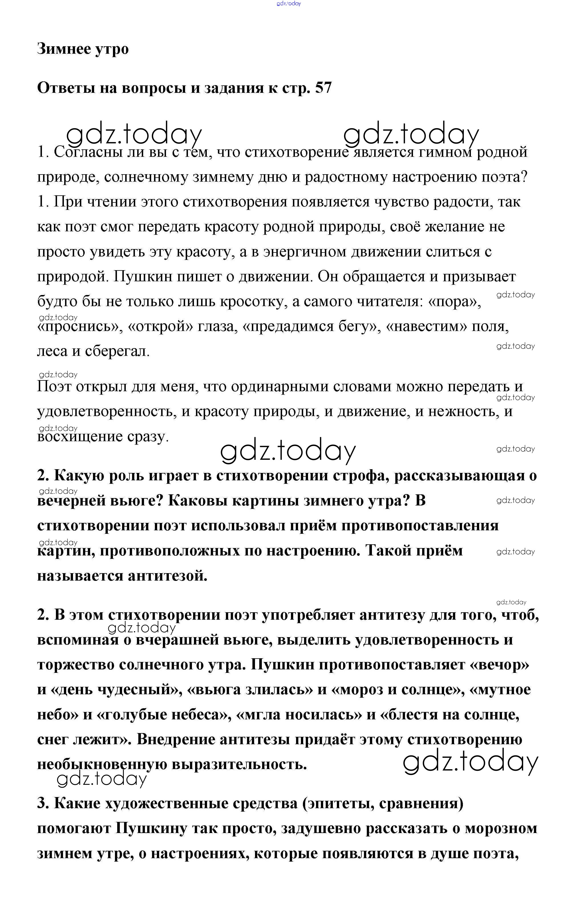 На страницах сайта gdz.today вы найдете учебный и вспомогательный материал, направленный на улучшения знаний школьной программы. ГДЗ - онлайн мир знаний Пушкин Решение к части 1 (Старое 15-е издание) страница 57 Учебнику по Литературе для 6 класса Полухина, Коровина Просвещение 2016
