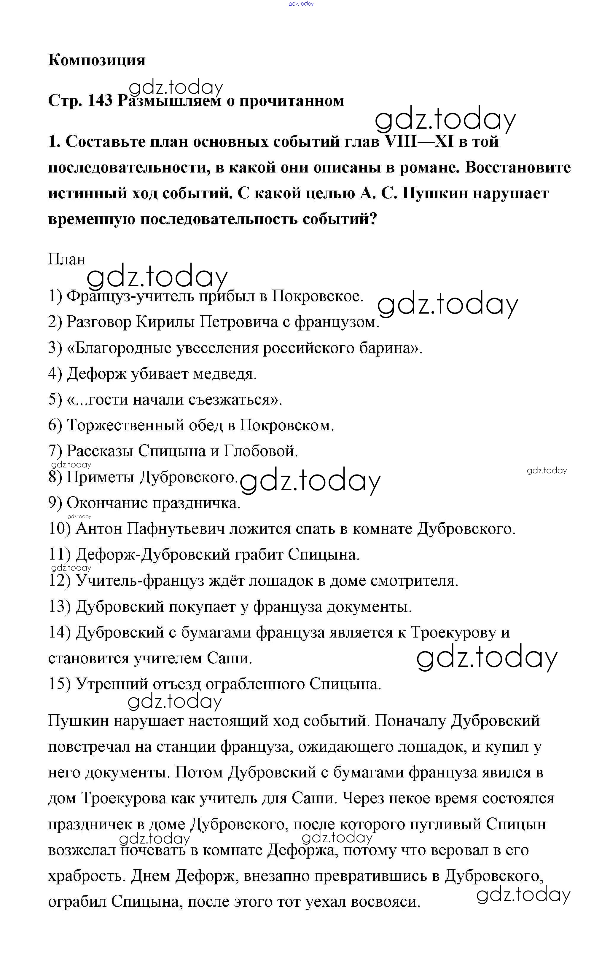 Ответы к Пушкин Решение к части 1 (Новое 16-е издание) страница 143 Учебнику по Литературе для 6 класса Полухина, Коровина Просвещение 2016