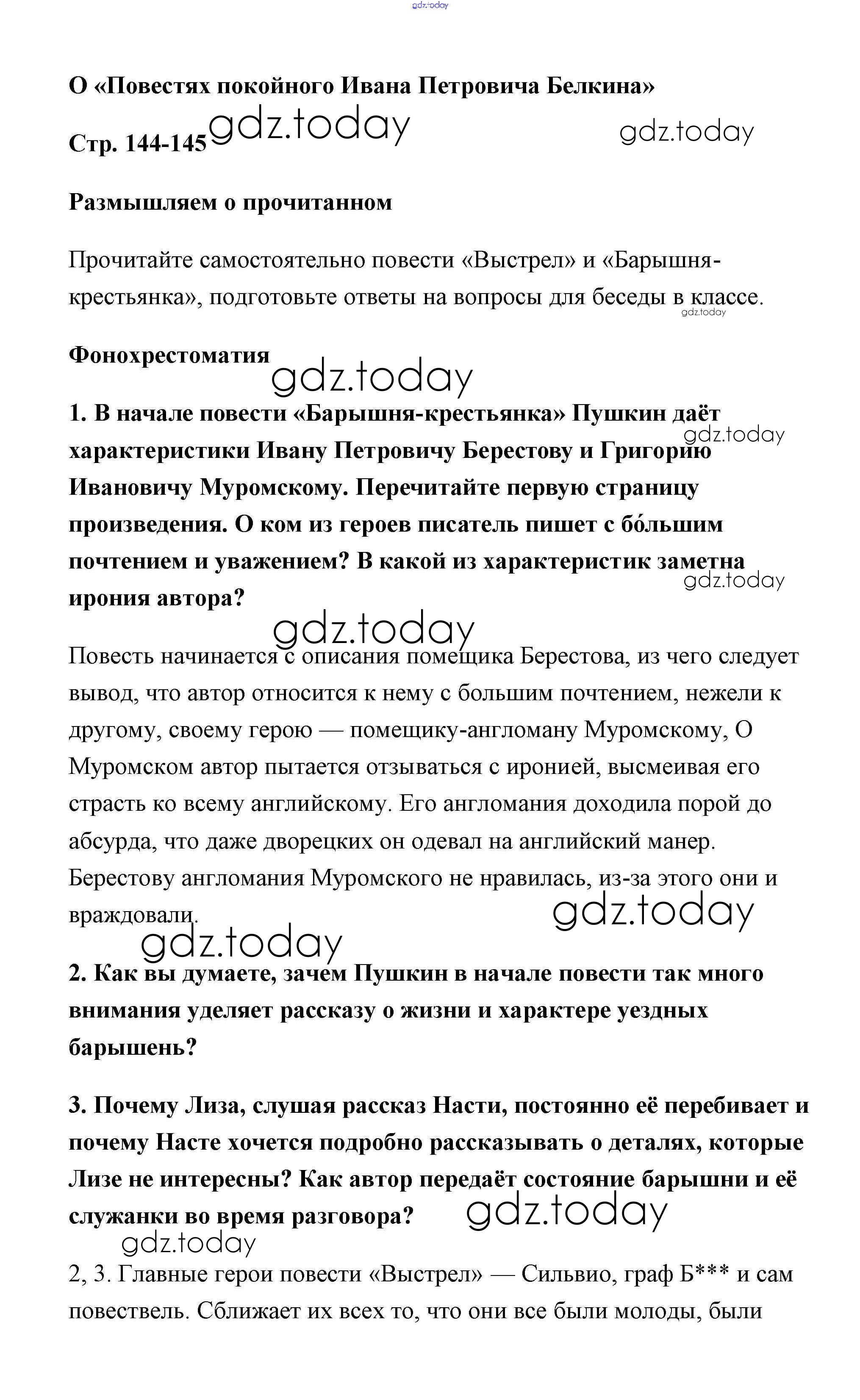 На страницах сайта gdz.today вы найдете учебный и вспомогательный материал, направленный на улучшения знаний школьной программы. ГДЗ - онлайн мир знаний Пушкин Решение к части 1 (Новое 16-е издание) страница 144-145 Учебнику по Литературе для 6 класса Полухина, Коровина Просвещение 2016
