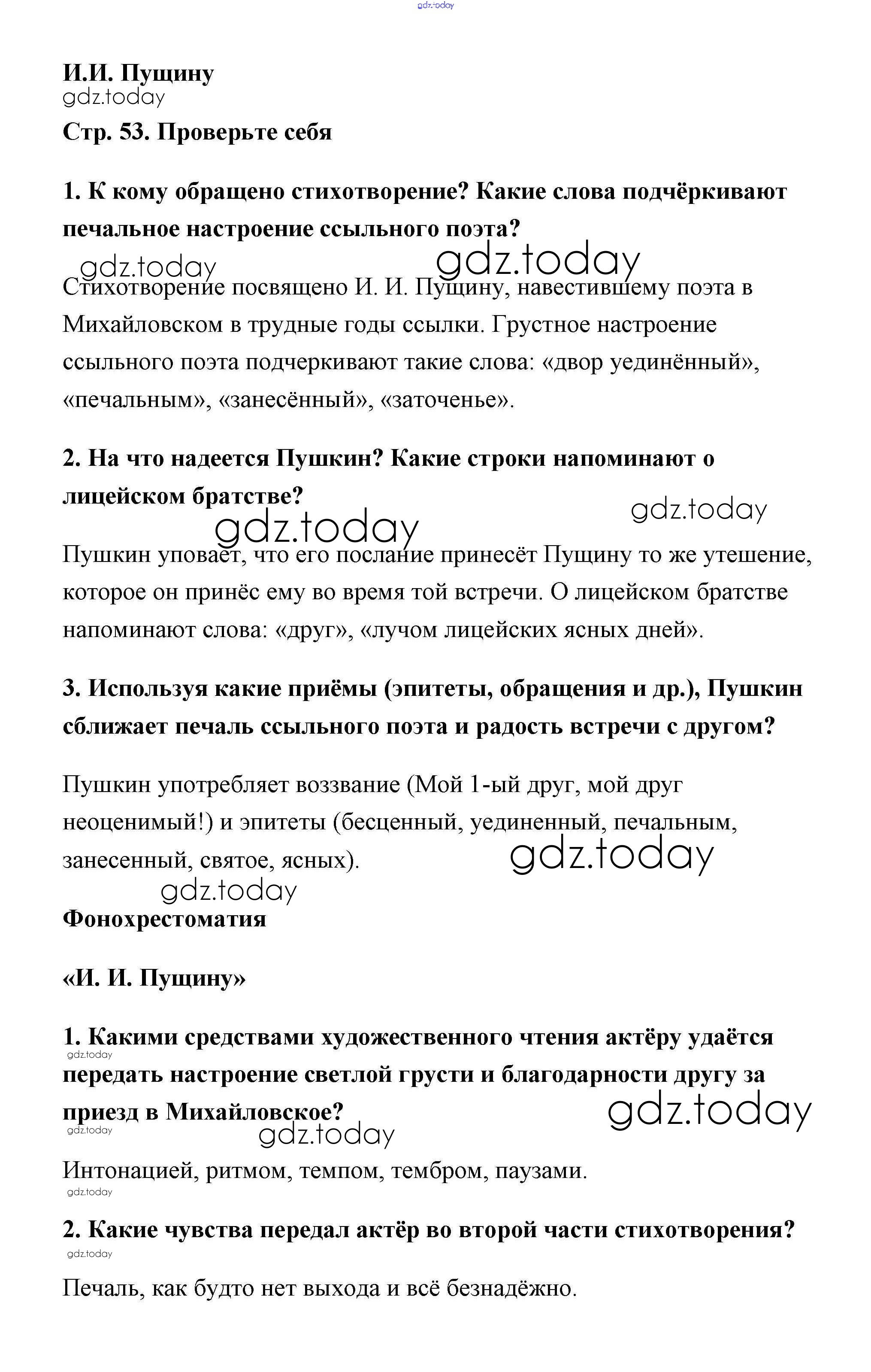 Ответы к Пушкин Решение к части 1 (Новое 16-е издание) страница 53 Учебнику по Литературе для 6 класса Полухина, Коровина Просвещение 2016
