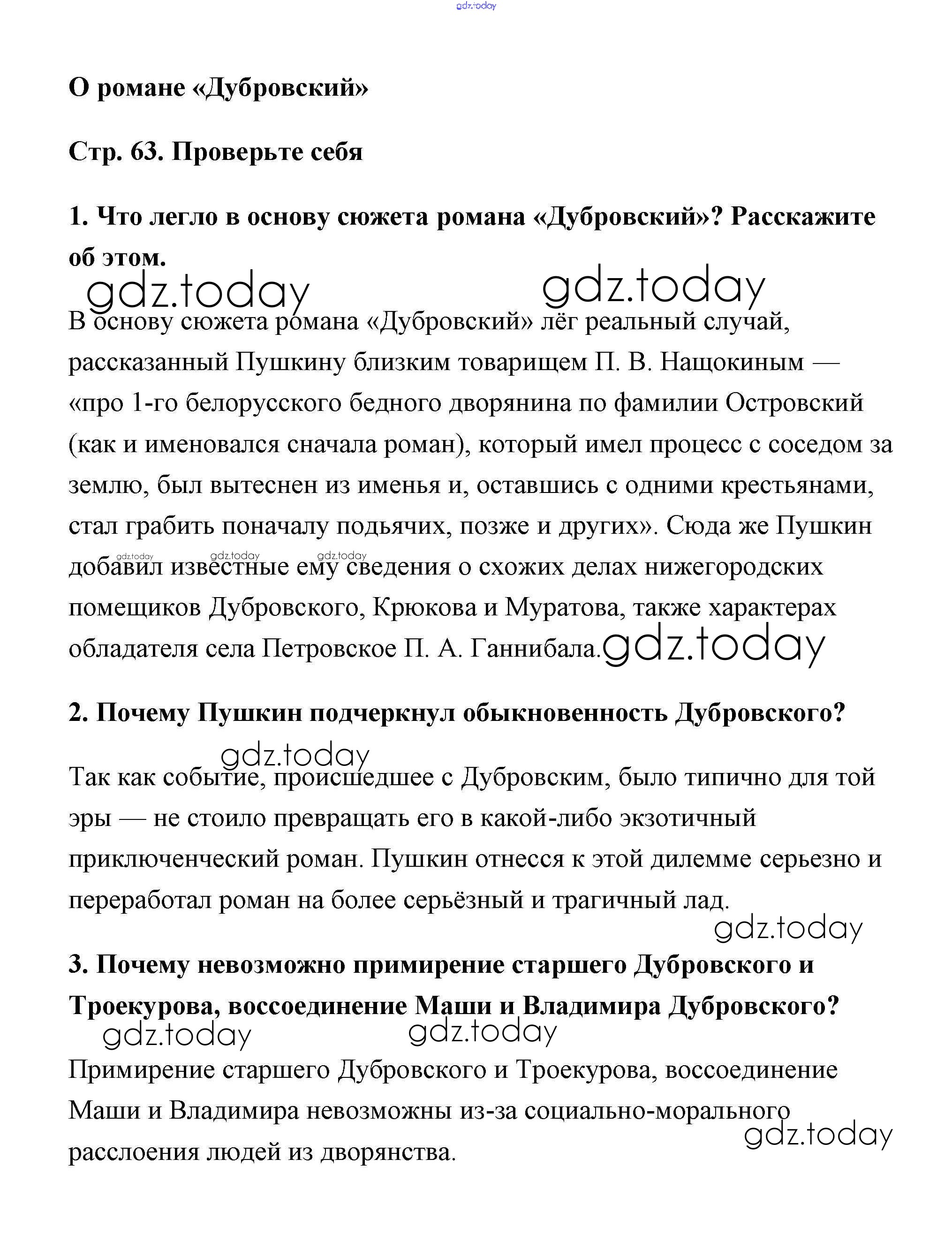 Ответы к Пушкин Решение к части 1 (Новое 16-е издание) страница 63 Учебнику по Литературе для 6 класса Полухина, Коровина Просвещение 2016