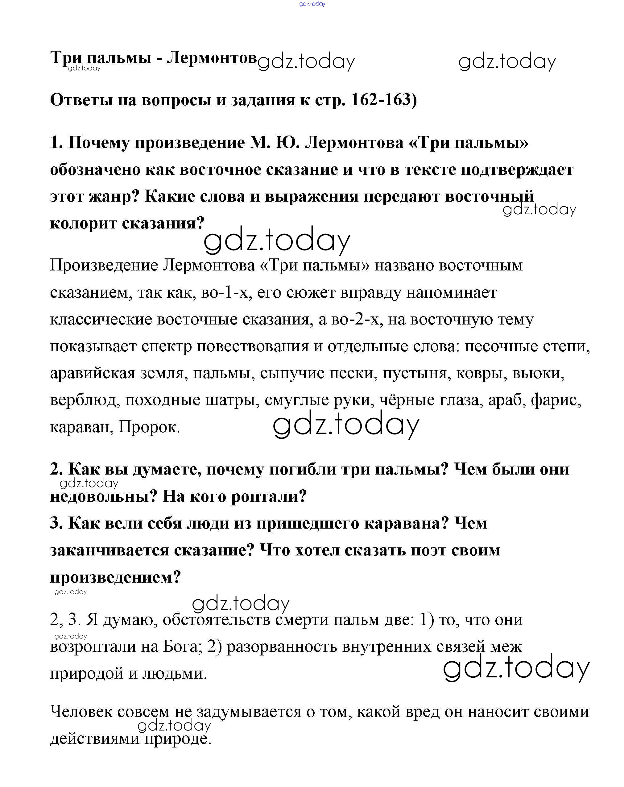 На страницах сайта gdz.today вы найдете учебный и вспомогательный материал, направленный на улучшения знаний школьной программы. ГДЗ - онлайн мир знаний Лермонтов Решение к части 1 (Старое 15-е издание) страница 162-163 Учебнику по Литературе для 6 класса Полухина, Коровина Просвещение 2016