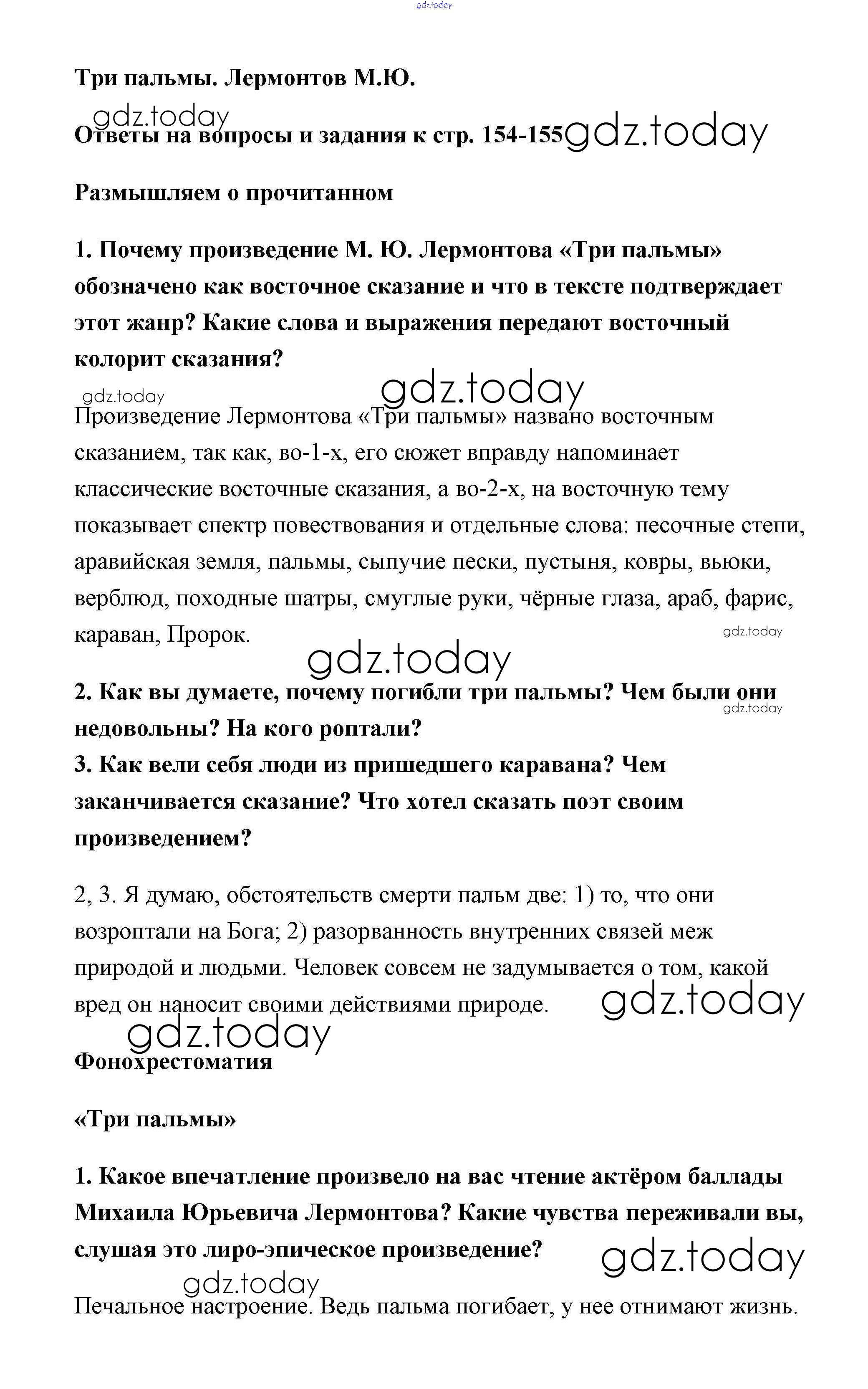 Ответы к Лермонтов Решение к части 1 (Новое 16-е издание) страница 154-155 Учебнику по Литературе для 6 класса Полухина, Коровина Просвещение 2016