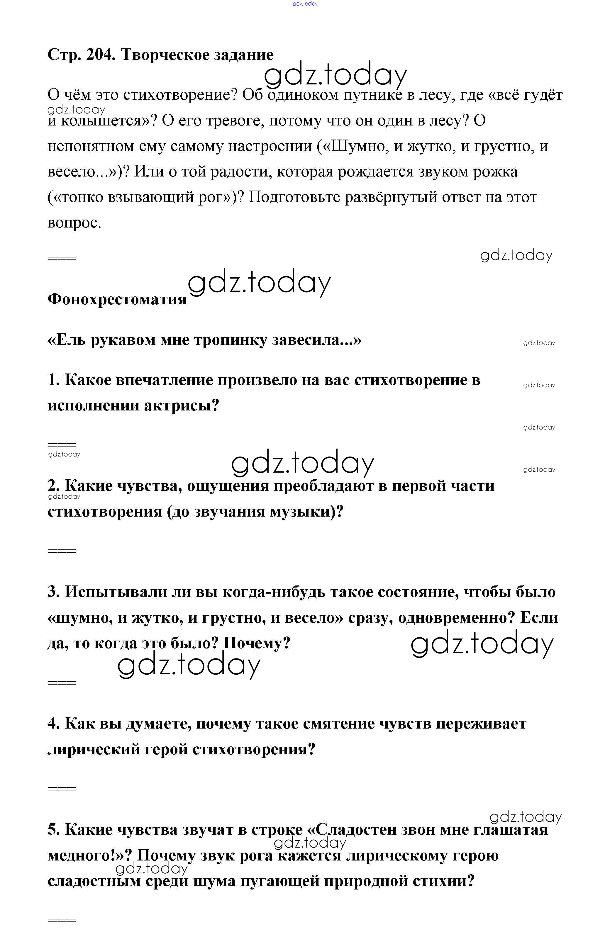 Ответы к Фет Решение к части 1 (Новое 16-е издание) страница 204 Учебнику по Литературе для 6 класса Полухина, Коровина Просвещение 2016