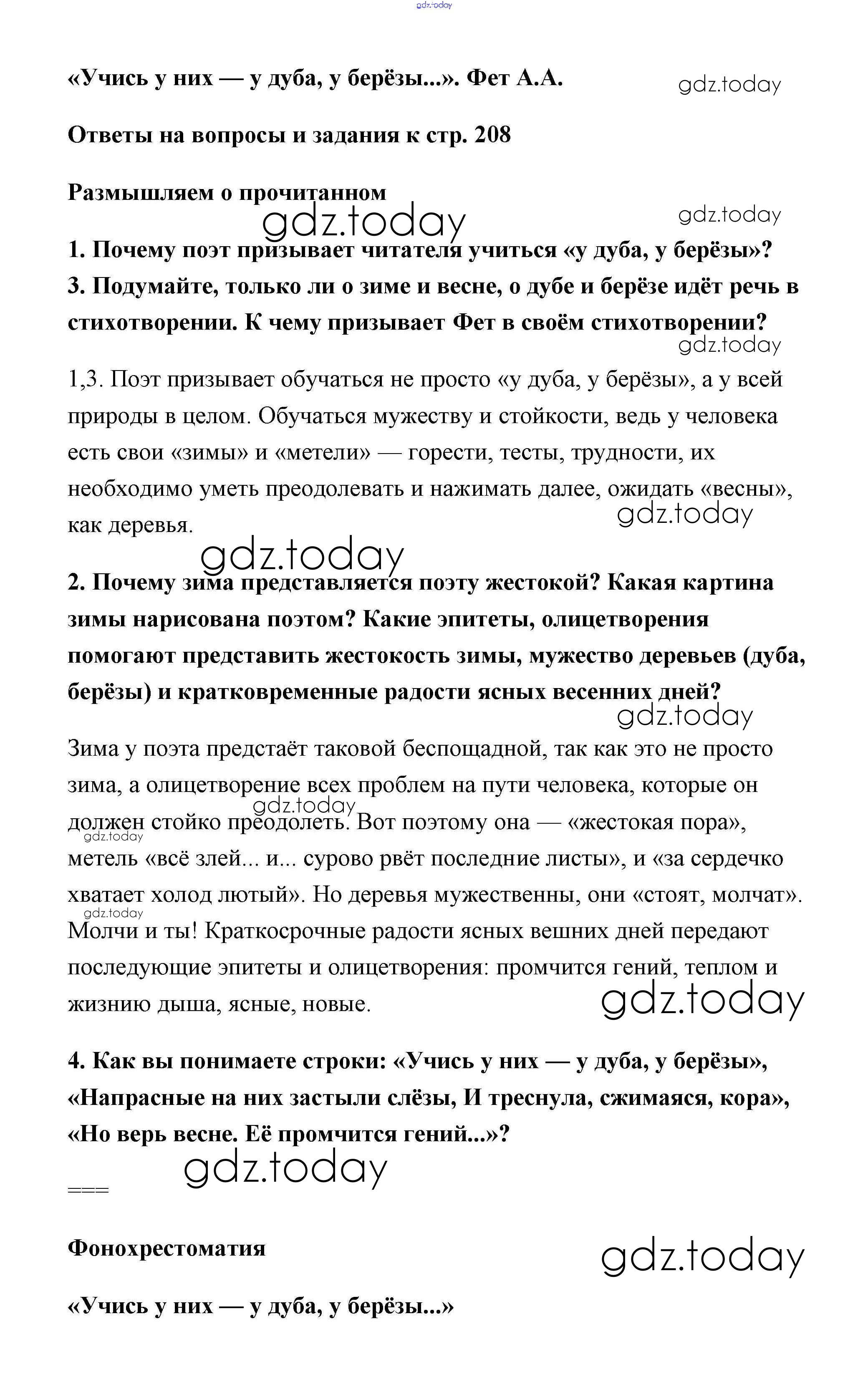 Ответы к Фет Решение к части 1 (Новое 16-е издание) страница 208 Учебнику по Литературе для 6 класса Полухина, Коровина Просвещение 2016