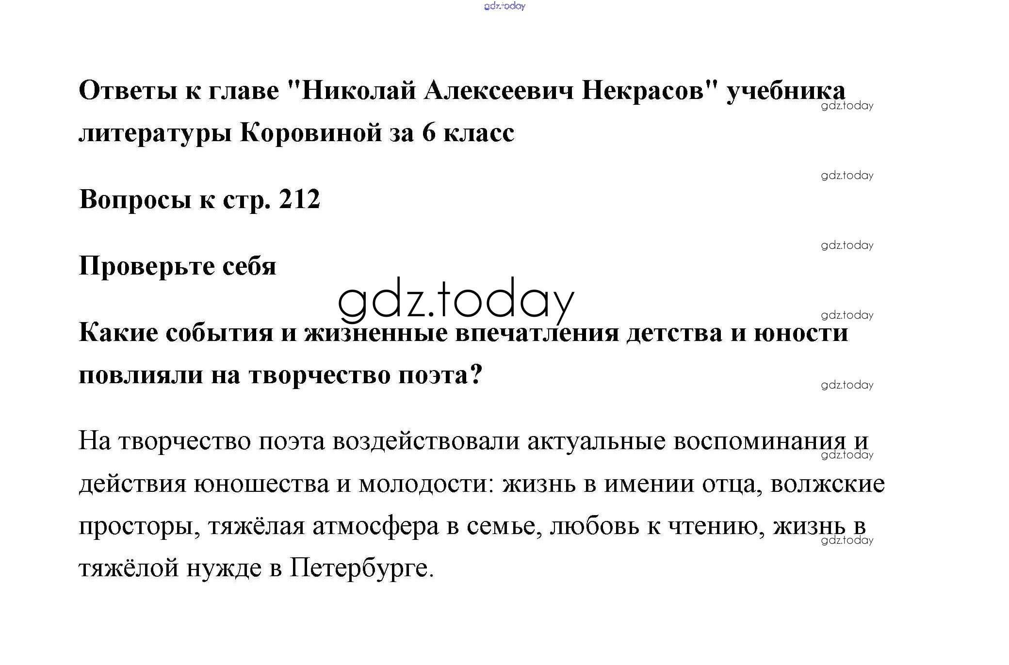 На страницах сайта gdz.today вы найдете учебный и вспомогательный материал, направленный на улучшения знаний школьной программы. ГДЗ - онлайн мир знаний Некрасов Решение к части 1 (Новое 16-е издание) страница 212 Учебнику по Литературе для 6 класса Полухина, Коровина Просвещение 2016