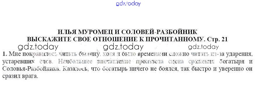На страницах сайта gdz.today вы найдете учебный и вспомогательный материал, направленный на улучшения знаний школьной программы. ГДЗ - онлайн мир знаний Выскажите свое отношение к прочитанному Илья Муромец и Соловей-Разбойник 1 Учебнику по Литературе для 6 класса Ланин, Устинова Вентана-граф Алгоритм успеха 2019