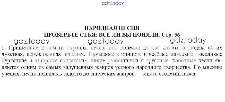 На страницах сайта gdz.today вы найдете учебный и вспомогательный материал, направленный на улучшения знаний школьной программы. ГДЗ - онлайн мир знаний Проверьте себя Народная песня 1 Учебнику по Литературе для 6 класса Ланин, Устинова Вентана-граф Алгоритм успеха 2019