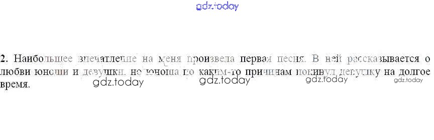 На страницах сайта gdz.today вы найдете учебный и вспомогательный материал, направленный на улучшения знаний школьной программы. ГДЗ - онлайн мир знаний Выскажите свое отношение к прочитанному Лирическая песня 2 Учебнику по Литературе для 6 класса Ланин, Устинова Вентана-граф Алгоритм успеха 2019
