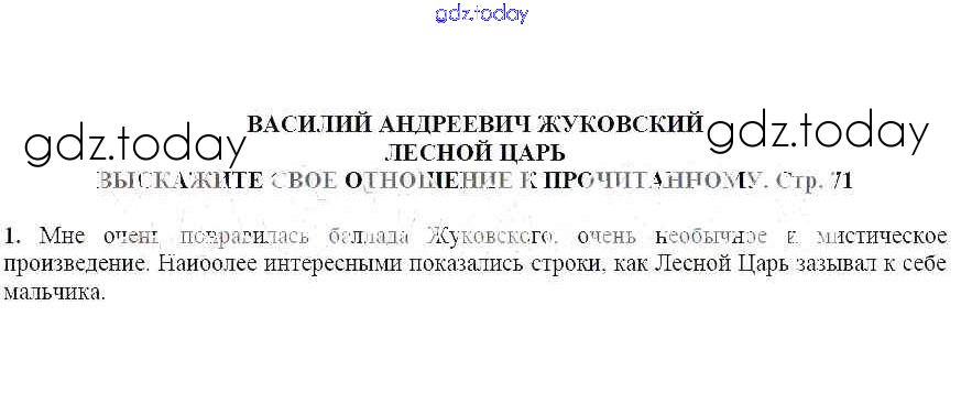 На страницах сайта gdz.today вы найдете учебный и вспомогательный материал, направленный на улучшения знаний школьной программы. ГДЗ - онлайн мир знаний Выскажите свое отношение к прочитанному Василий Андреевич Жуковский. Лесной царь 1 Учебнику по Литературе для 6 класса Ланин, Устинова Вентана-граф Алгоритм успеха 2019