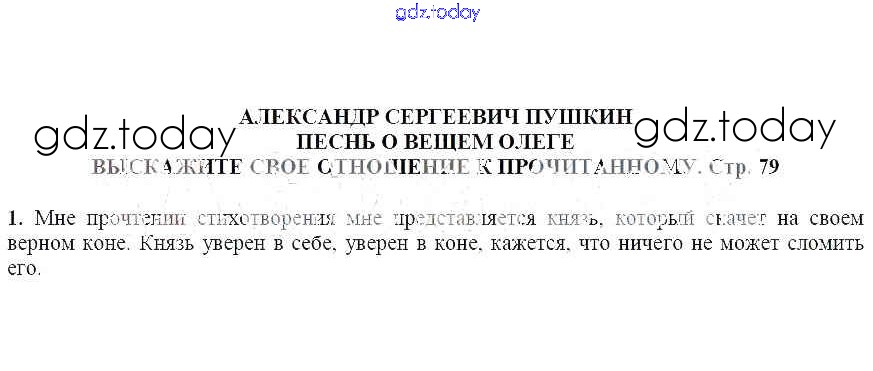 На страницах сайта gdz.today вы найдете учебный и вспомогательный материал, направленный на улучшения знаний школьной программы. ГДЗ - онлайн мир знаний Выскажите свое отношение к прочитанному Александр Сергеевич Пушкин. Песнь о Вещем Олеге 1 Учебнику по Литературе для 6 класса Ланин, Устинова Вентана-граф Алгоритм успеха 2019