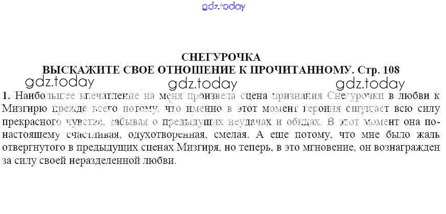 На страницах сайта gdz.today вы найдете учебный и вспомогательный материал, направленный на улучшения знаний школьной программы. ГДЗ - онлайн мир знаний Выскажите свое отношение к прочитанному Снегурочка 1 Учебнику по Литературе для 6 класса Ланин, Устинова Вентана-граф Алгоритм успеха 2019