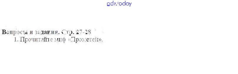 На страницах сайта gdz.today вы найдете учебный и вспомогательный материал, направленный на улучшения знаний школьной программы. ГДЗ - онлайн мир знаний Вопросы и задания, стр. 27-28 Из греческой мифологии. Пять веков 1 Учебнику по Литературе для 6 класса Меркин Русское слово Инновационная школа 2016