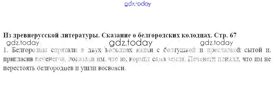 На страницах сайта gdz.today вы найдете учебный и вспомогательный материал, направленный на улучшения знаний школьной программы. ГДЗ - онлайн мир знаний Сказание о белгородских колодцах, стр. 67 Решение к части 1 1 Учебнику по Литературе для 6 класса Меркин Русское слово Инновационная школа 2016