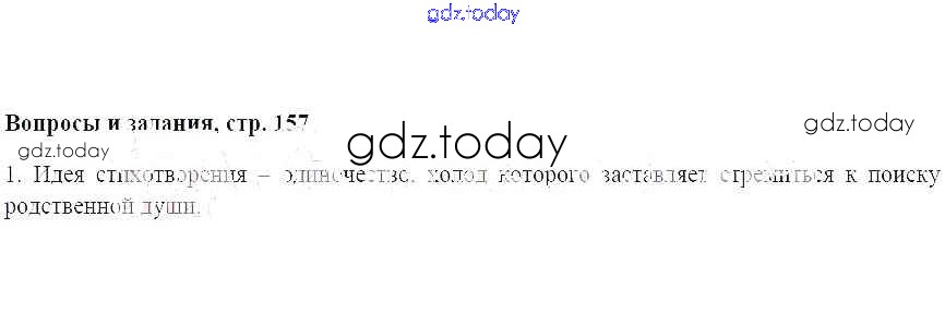 На страницах сайта gdz.today вы найдете учебный и вспомогательный материал, направленный на улучшения знаний школьной программы. ГДЗ - онлайн мир знаний Вопросы и задания стр. 157 На севере диком стоит одиноко 1 Учебнику по Литературе для 6 класса Меркин Русское слово Инновационная школа 2016